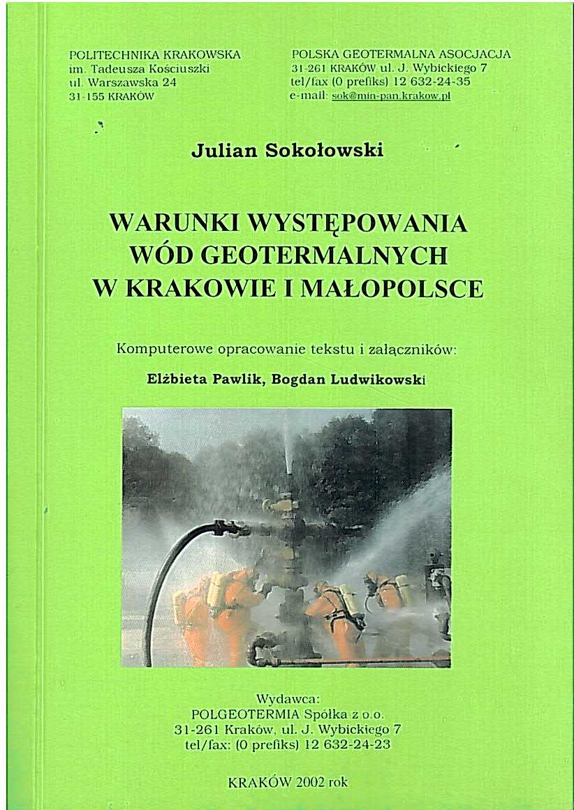 Publikacja niniejsza przygotowana została przy okazji realizacji pracy pt."Ocena geotermalna Krakowa ze szczególnym uwzględnieniem okolic Nowego Kleparza i Czyżyn". Wymieniona praca wykonana została w ramach Akcji COST 522-Energetyka 21 wieku o wysokiej sprawności i niskiej emisji zanieczyszczeń. Akcja ta ze strony polskiej była finansowana przez Komitet Badań Naukowych w ramach grantu zamawianego 12/TO8/10/99....(Ze wstępu)