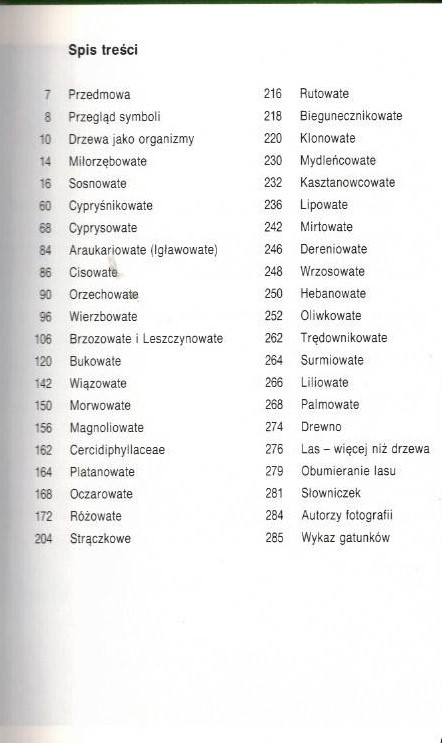 Kolorowy, wyczerpujący, podręczny leksykon dla miłośników przyrody. Szczegółowe opisy rodzimych i sprowadzonych do Europy gatunków drzew. Kolorowe fotografie okazów wszystkich omawianych gatunków. Zwięzły wykład o budowie i fizjologii drzew oraz gospodarczym znaczeniu i ochronie lasów. Wykaz polskich i łacińskich nazw gatunków.