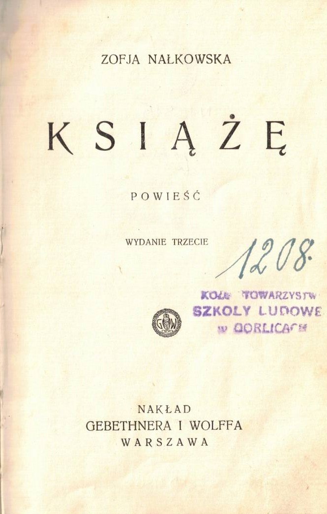 Książę : powieść / Zofia Nałkowska. - Wydanie trzecie. - Warszawa : Gebether i Wolff, 1929 (Warszawa : J. Rajski). - 246 stron ; 20 cm.