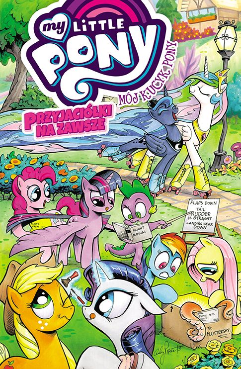 Komiksy z serii My Little Pony: Przyjaźń to magia, oparte o serial telewizyjny o takim samym tytule, zyskały ogromną popularność wśród czytelników w różnym wieku za sprawą zwariowanych pomysłów, szaleńczej akcji i niebanalnego humoru. Nic dziwnego, że wydawca i twórcy zdecydowali się obok głównej serii publikować cykle poboczne, a jeden z nich to Przyjaciółki na zawsze. Zamysłem tych komiksów jest przedstawianie par bohaterów, zarówno dobrze znanych, jak i pobocznych, choć lubianych przez liczne grono fanów świata kucyków. Redaktor serii Bobby Curnow porównał te opowieści do komedii w stylu Flipa i Flapa. W pierwszym tomie znalazły się cztery historie. Pierwsza przedstawia start Applejack i Pinkie Pie w konkursie kulinarnym. W drugiej Znaczkowa Liga łączy siły ze smokiem Discordem w kolejnej nieudanej próbie zdobycia upragnionych znaczków. W trzecim komiksie Spike chce podarować Twilight Sparkle nowy teleskop i prosi o pomoc księżniczkę Celestię, co kończy się niebezpieczną wyprawą na szczyt Kryształowej Góry. Na koniec zaś Twilight Sparkle i Shining Armor ruszają we wspólny pościg za tajemniczym duchem. (Rec. Wydawn.)