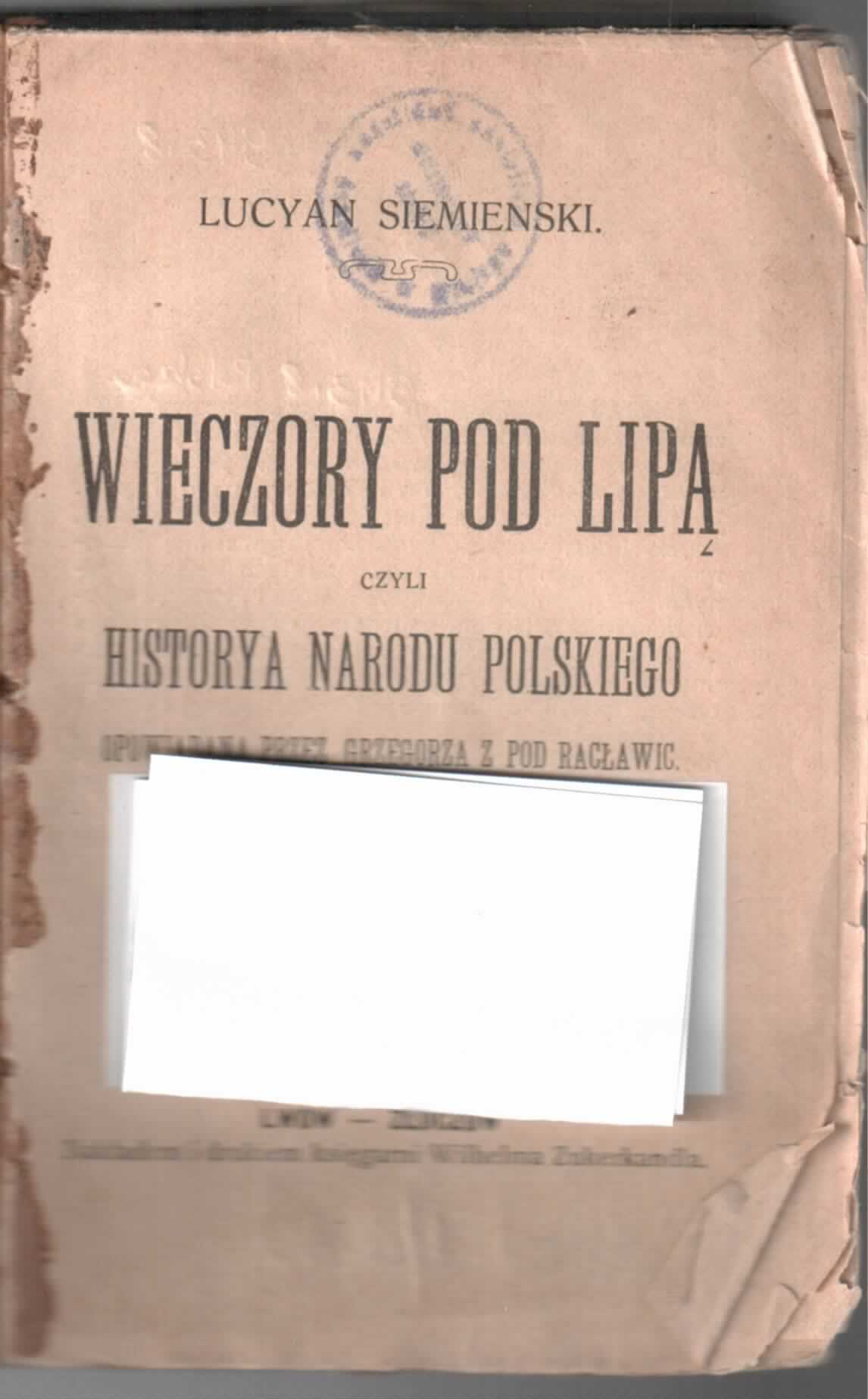 Na stronie tytułowej pseudonim autora, nazwa: Lucjan Siemieński.