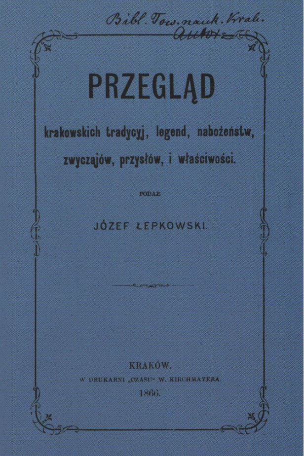 Publikacja napisana w 1866 roku i podarowana Towarzystwu w przededniu sukcesów naukowych jej autora, a równocześnie - wyprzedzająca swoją epokę. W czasie gdy cracoviana bardzo jeszcze były nieliczne, a przewodniki po mieście ograniczyły się do prac Ambrożego Grabowskiego i Józefa Mączyńskiego, Łepkowski zbiera i sygnalizuje szereg zagadnień, dziś będących polem badawczym różnych dyscyplin, od religioznawstwa przez historię, historię sztuki, dzieje obyczaju, etnografię, folklorystykę i paremiologię. Zbiera - i opowiada, rozsnuwając przez czytelnikami niezwykłość Krakowa, z pełną jednak świadomością uczonego, że nie ma dotąd "dzieła podejmującego szczegółowo i wyłącznie te krakowskie tradycje, podania, pieśni, przysłowia i zwyczaje", i równocześnie ze świadomością poety, że on sam zaledwie tylko poruszył owe struny...(Karolina Grodziska)