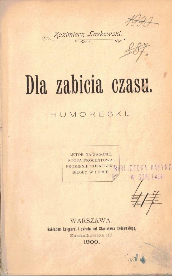W książce pieczątka: Biblioteka Kasynowa w Gorlicach.