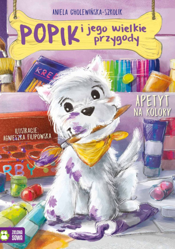 Znacie Popika? To piękny BIAŁY terierek, bardzo zadowolony ze swojego życia. Jednak gdy pewnego dnia Misia zaczyna zachwycać się KOLOROWYMI ptakami, biel nagle przestaje się podobać Popikowi… Czuje się taki… bezbarwny. Psiak postanawia zdobyć więcej kolorów. Tylko jak? Sięgnijcie po drugi tom przygód Popika, psiego towarzysza Misi. Tym razem poza pogonią za kolorami przed Popikiem także inne przygody: poszukiwanie piłki zagubionej wśród jabłek, wizyta u prawdziwego psa wystawowego, a nawet wyprawa na jarmark! Co jeszcze może przydarzyć się w niezwykłym psim życiu Popika? „Popik i jego wielkie przygody” to kolejna, po bestsellerowej „Misia i jej mali pacjenci”, seria autorstwa Anieli Cholewińskiej-Szkolik dla najmłodszych czytelników. Tym razem głównym bohaterem tych ciepłych historii jest piesek Misi – biały terier Popik.