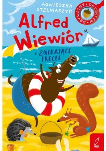 Na Alfreda Wiewióra i przyjaciół czeka nowa zagadka! Pani Jadzia wraz z detektywami wybierają się nad morze, by nabrać sił przed kolejnymi detektywistycznymi wyzwaniami. Wygrzewają się na słońcu na plaży, zażywają morskich kąpieli, szukają bursztynu, zbierają muszle i budują zamki z piasku – jednym słowem: oddają się błogiemu lenistwu. Ich wypoczynek zostaje jednak przerwany przez dziwne wydarzenia: ktoś zaczyna wykradać plażowiczom jedzenie! Największym powodzeniem cieszą się precle pani Steni – ilekroć je przyniesie, znikają w tajemniczych okolicznościach. Zaniepokojona pani Stenia zleca więc Alfredowi śledztwo. Rozpoczyna się dochodzenie! Detektywi bacznie przyglądają się plażowiczom, by wytypować sprawcę kradzieży lub złapać go na gorącym uczynku. Złodziej wciąż jednak pozostaje nieuchwytny. Alfred wraz z Maćkiem Jeżem budują zamek z piasku i z ukrycia prowadzą obserwacje, utrudnione przez parasole i parawany. Stefan poświęca się i udaje rzeźbę z piasku, by przyłapać złodzieja na gorącym uczynku. Wszystko jednak na próżno! Czy detektywom uda się ustalić, kto stoi za kradzieżami precli?