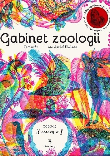 Efektowny album o zwierzętach dziennych i nocnych w dziesięciu fascynujących miejscach na Ziemi. Spójrz przez kolorowe soczewki, aby odkryć ich sekrety! Przyroda nigdy nie śpi! Kto budzi się o zmroku, a kto o świcie? Kto ma superczuły węch, a kto widzi w ciemnościach? Poznaj zwierzęta aktywne o różnych porach dnia i nocy i ich niezwykłe sposoby na przetrwanie w różnych środowiskach. Kongijski las deszczowy, równina Serengeti, syberyjska tajga, dorzecze Gangesu i inne siedliska odsłonią przed tobą swoje tajemnice dzięki niezwykłym ilustracjom. Każda z nich skrywa trzy warstwy. Przez czerwony filtr zobaczysz zwierzęta, które prowadzą dzienny tryb życia, zielony ukaże świat roślinności, a niebieski pozwoli odkryć tajemnicze stworzenia aktywne nocą oraz o świcie i zmierzchu. Książka składa się z dziesięciu rozdziałów prezentujących poszczególne ekosystemy. W każdym znajduje się opis danego środowiska, czarno-biały przewodnik po występujących w nim gatunkach zwierząt oraz duże barwne ilustracje do oglądania przez kolorowe filtry. „Gabinet zoologii” to fascynująca wyprawa przez różne kontynenty oraz mnóstwo ciekawych wiadomości o strategiach zwierząt, które wybrały do życia światło dnia albo mroki nocy.