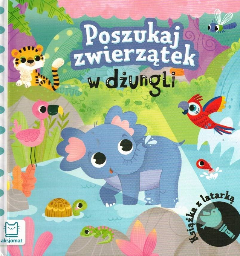 Witamy w dżungli! Kartonowa książeczka o zwierzętach z wesołymi wierszykami to zawsze strzał w dziesiątkę. Małe dzieci uwielbiają takie książeczki, a nasza propozycja ma dodatkową niespodziankę – do książki dołączona jest papierowa „latarka” – wystarczy tylko włożyć latarkę pomiędzy stronę a pokrywającą ją czarną folię, a ukryte na rysunku zwierzątka staną się widoczne. Zabawa w poszukiwanie zwierząt na kartach książki z pewnością spodoba się dziecku. Papierowa latarka przyczepiona jest do wstążeczki, dzięki czemu się nie zgubi. Po zabawie należy schować ją do wycięcia w książeczce. Z tą książką dziecko bawi się w detektywa, szuka zwierzątek, poznaje ich nazwy oraz wzbogaca pamięć i słownictwo po wysłuchaniu wierszyków. Kartonowa książeczka z latarką to doskonała zabawa dla małych dzieci i źródło wiedzy o zwierzętach.