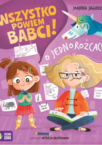 Wszystko powiem babci! : o jednorożcach / Joanna Jagiełło ; ilustracje: Patrycja Grześkowiak. - Wydanie I. - Warszawa : Zielona Sowa, copyright 2025. - 31, [2] strony : ilustracje ; 26 cm.