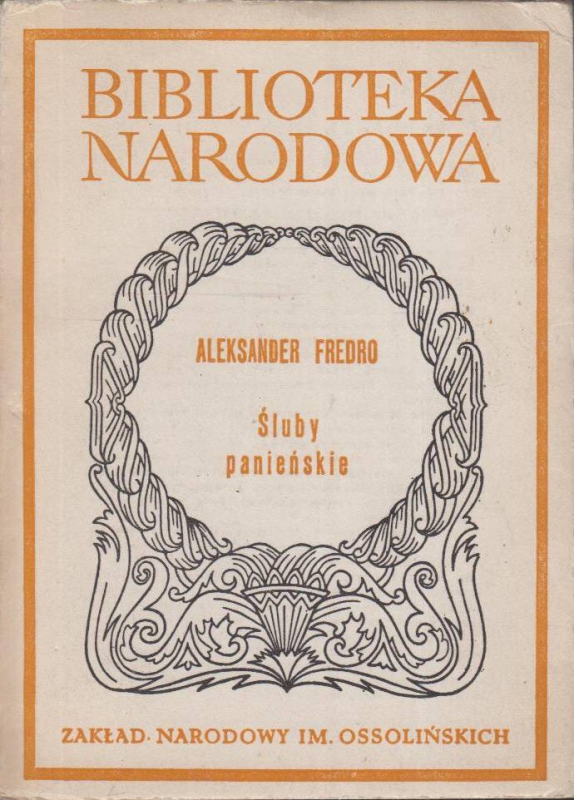 Śluby panieńskie / Aleksander Fredro ; opracował Mieczysław Inglot. - Wydanie 6. - Wrocław ; Warszawa ; Kraków ; Gdańsk ; Łódź : Zakład Narodowy im. Ossolińskich, 1986. - LXIX, 216, [2] strony ; 17 cm.
