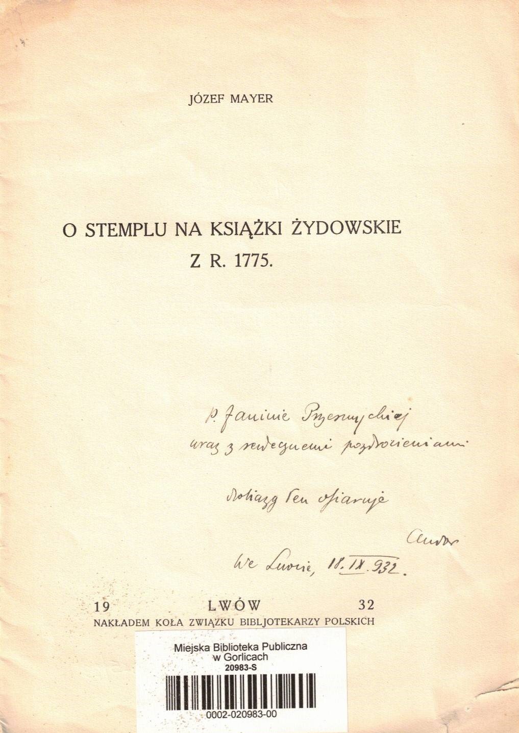 Odbitka: Lwowskie Studja Bibljoteczne, 1932.