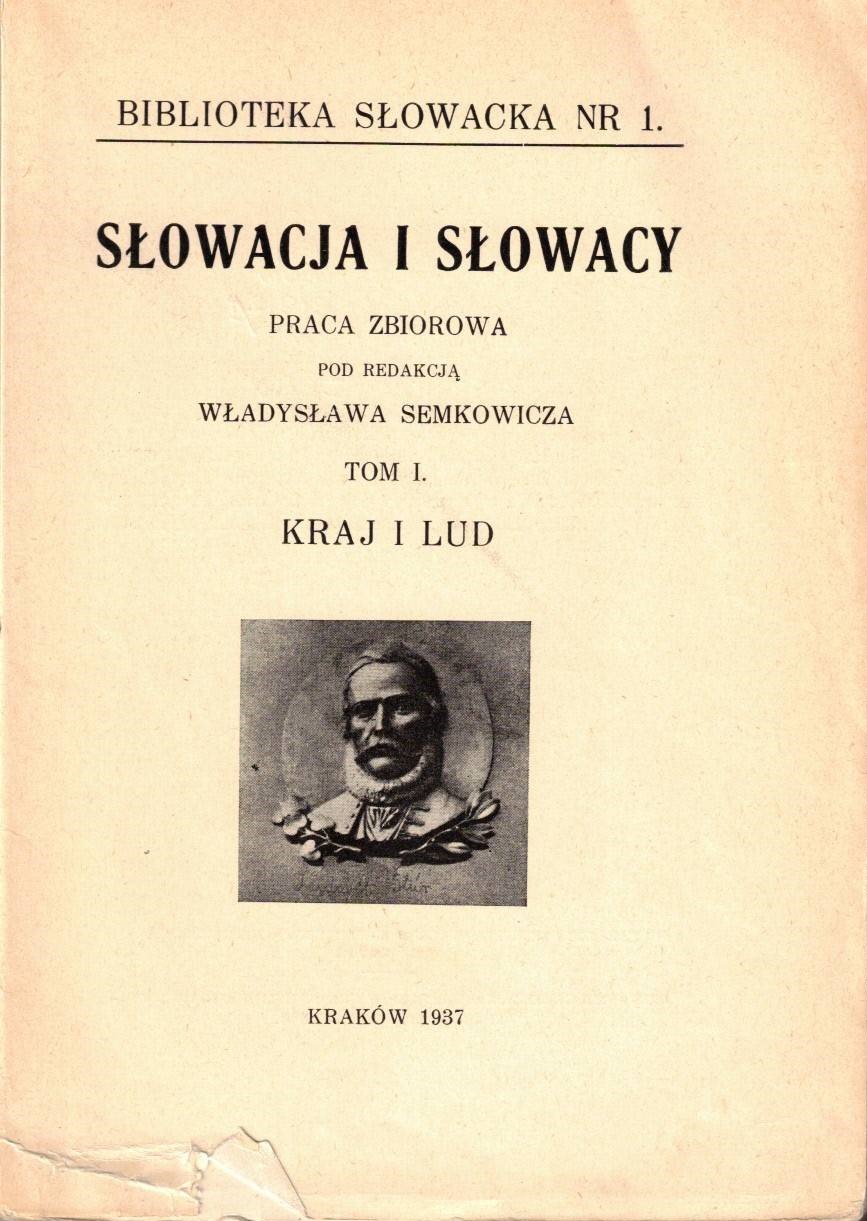 Słowacja i Słowacy : praca zbiorowa. T. 1, Kraj i lud / pod redakcją Władysława Semkowicza. - Kraków : Sekcja Słowacka Towarzystwa Słowiańskiego, 1937 (Kraków : Drukarnia Krakowskich Zakładów Graficznych i Wydawniczych). - 268, [2] stron : ilustracje ; 23 cm.