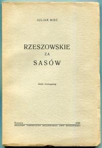 Rzeszowskie za Sasów : szkic historyczny / Julian Nieć. - Rzeszów : Towarzystwo Regionalne Ziemi Rzeszowskiej, 1938 (Rzeszów : Drukarnia Udziałowa). - [6], 152, [3] stron, [12] kart tablic : ilustracje, mapy, tabele ; 24 cm.