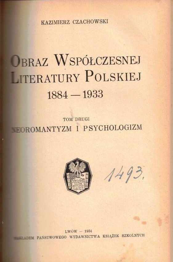 Naturalizm i neoromantyzm. T. 1. Neoromantyzm i psychologizm. T. 2 / Kazimierz Czachowski. - Lwów : Państwowe Wydawnictwo Książek Szkolnych, 1934 (Lwów : Druk Żydaczewskiego). - [8], 355 s. ; [6], 442 strony ; 22 cm.