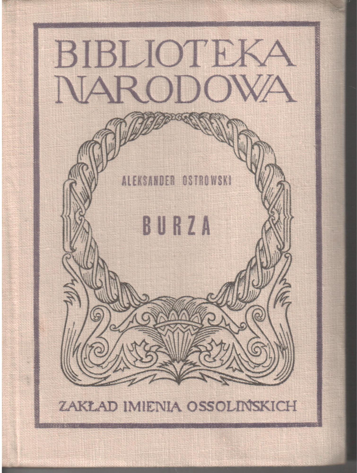 W dramacie "Burza" na tle symbolicznego miasta Kalinowa pokazany został głęboki konflikt społeczny między obozem obskurantyzmu i tyranii a rodzącym się w młodym pokoleniu dążeniem do nowego, swobodnego życia. Wyrazicielami patriarchalnego poglądu na świat są w sztuce Dikoj i Kabanowa, przedstawiciele warstwy kupieckiej z okresu pierwotnej akumulacji kapitału. Wychowany w starych przesądach, zrodzonych z feudalnej koncepcji świata, umie Dikoj cenić tylko prawo przemocy i siły. Wierny tej zasadzie, popełnia przestępstwa i podłości, w których - zgodnie z obowiązującym w tym Ciemnogrodzie układem sił społecznych - uczestniczą też przedstawiciele władzy i porządku publicznego, jak np. horodniczy, aprobujący całkowicie oszustwa Dikoja. Despotyzm i samowola Dikoja wypływają z jego szerokiej i nieokiełzanej natury, a brak jakichkolwiek etycznych hamulców sprzyja jego moralnemu upadkowi i degeneracji. (Fragment wstępu)