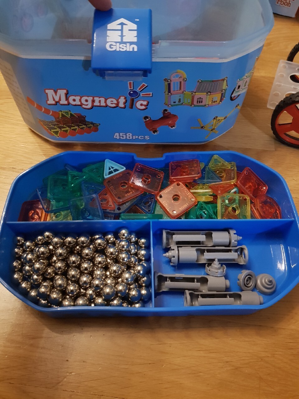 Klocki magnetyczne. - Szanghaj : Xin Booming Plastic Toys, b.r.. - Pudełko plastikowe (456 elementów) ; 16x27x19 cm.