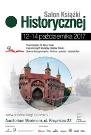 Plakat informujący o Salonie Książki Historycznej, który odbył się w dniach od 12 do 14 października 2017 roku w Auditorium Maximum w Krakowie.