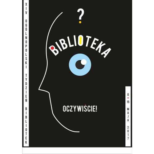 Plakat informujący o XIV Ogólnopolskim Tygodniu Bibliotek, który miał miejsce w terminie od 8 do 15 maja 2017 roku.