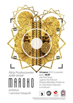 Plakat informujący o wystawie fotografii Alicji Przybyszowskiej, miała ona miejsce w Miejskiej Bibliotece Publicznej w Gorlicach w dniach od 14 marca do 4 kwietnia 2019 roku.