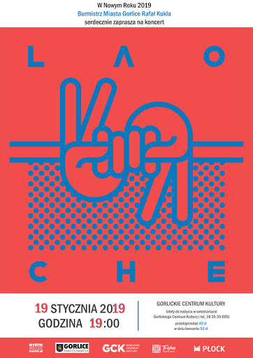 Plakat informujący o koncercie zespołu Lao Che, który odbył się 19 stycznia 2019 roku w Gorlickim Centrum Kultury.