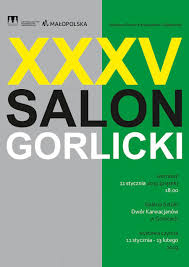 Plakat informujący o wystawie gorlickiego środowiska plastycznego "XXXV Salon Gorlicki", która odbyła się w Dworze Karwacjanów i Gładyszów w Gorlicach w dniach od 11 stycznia do 13 lutego 2019 roku.