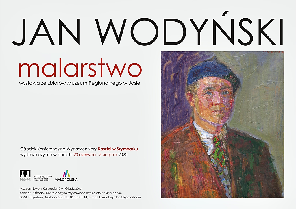 Plakat informujący o wystawie malarstwa Jana Wodyńskiego, która odbyła się w dniach od 23 czerwca do 5 sierpnia 2020 roku w Ośrodku Konferencyjno Wystawienniczym w Szymbarku. Wystawa ze zbiorów Muzeum Regionalnego w Jaśle.