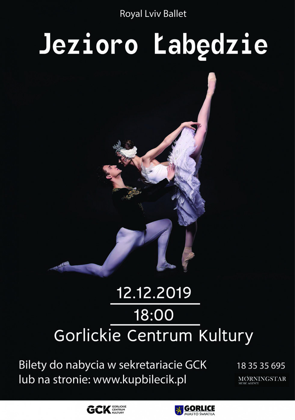 Plakat informujący o balecie "Jezioro Łabędzie", który odbył się 12 grudnia 2019 roku w Gorlickim Centrum Kultury.