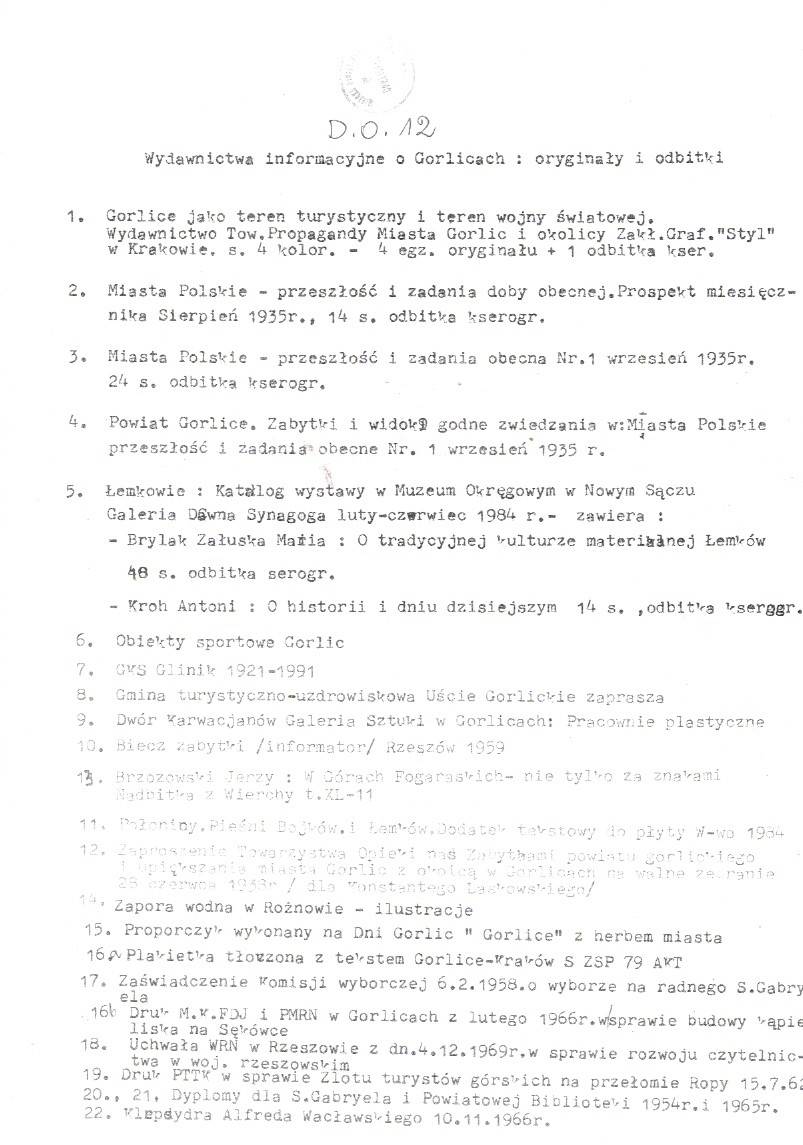 Teczka z wydawnictwami informacyjnymi o Gorlicach oryginały i odbitki.