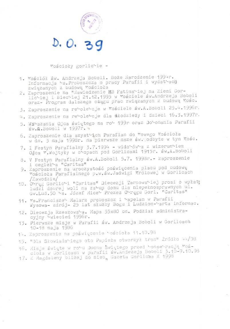 Teczka zawierająca foldery informujące o kościołach ich budowach, rekolekcjach, zaproszeniach na rekolekcje czy poświęceniu z terenu miasta Gorlice i powiatu.