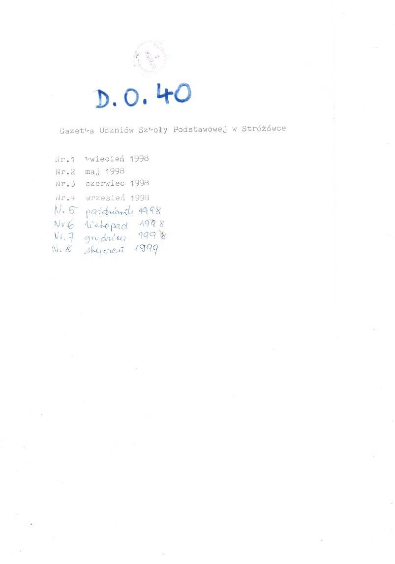 Gazetka uczniów Szkoły Podstawowej w Stróżówce / - Stróżówka : Szkoła Podstawowa, 1998-1999. - 1 teczka ; 21 cm.