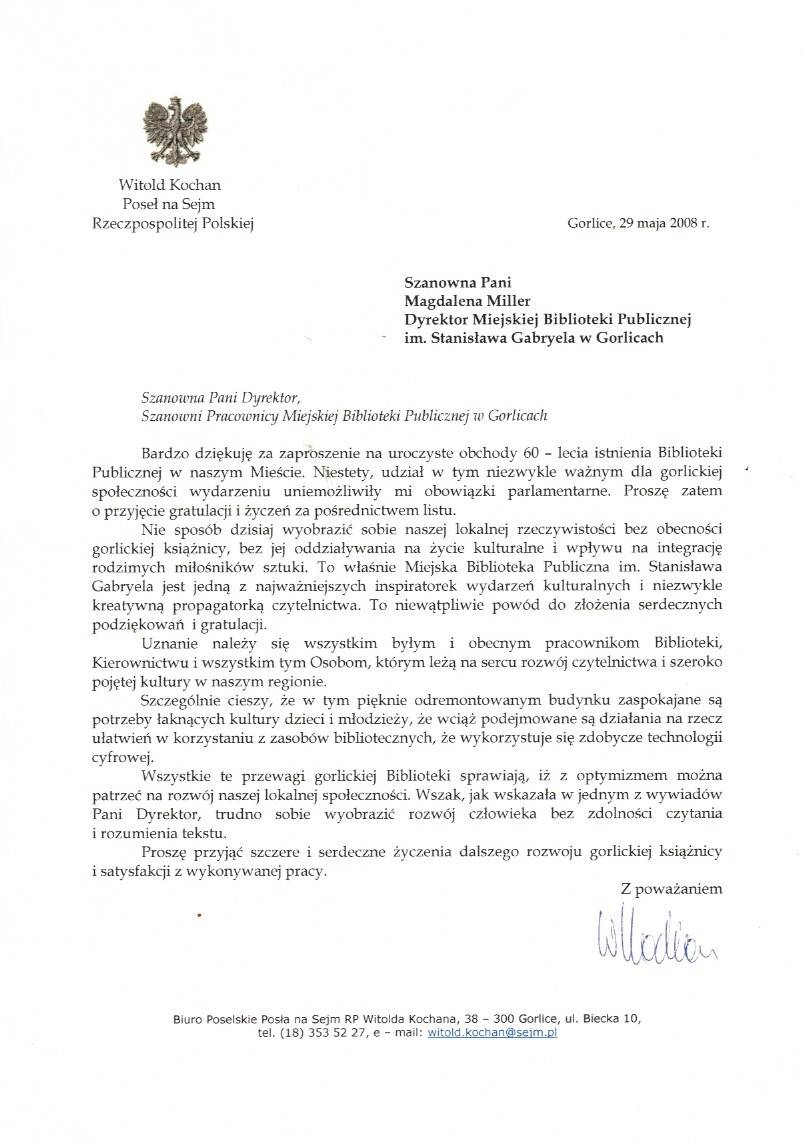 List gratulacyjny / Witold Kochan. - Gorlice : Witold Kochan, 2008. - [1] strona ; 31 cm.