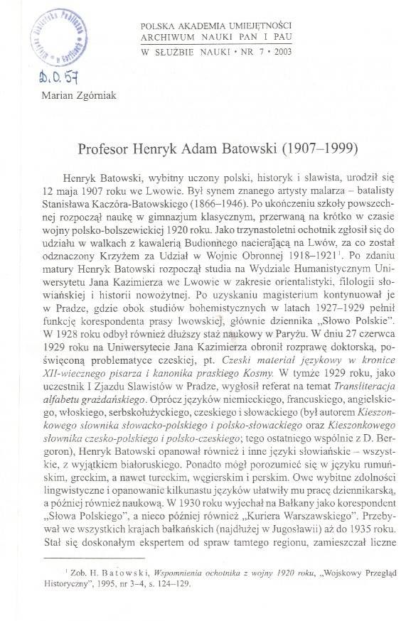 Odbitka ksero z "W Służbie Nauki" nr 7 z 2003 roku.