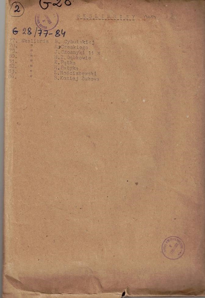 Exlibrisy osób prywatnych. - [b.m.w.] : [b.w.], [b.r.w.]. - [1] teczka : ilustracje ; 23x33 cm.