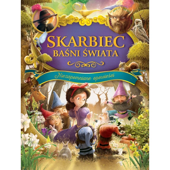 Oto prawdziwy skarbiec najwspanialszych baśni z całego świata, znanych i lubianych przez wszystkie dzieci. Znajdziecie w nim niezwykłe opowieści: Mała syrenka, Kot w butach, Dzielny krawczyk, Cudowna lampa Aladyna, Królewna Śnieżka i siedmiu krasnoludków, Tomcio Paluch, Muzykanci z Bremy, Piękna i Bestia, a także ciekawostki o ich autorach oraz o historii każdej baśni. (Z okł.)