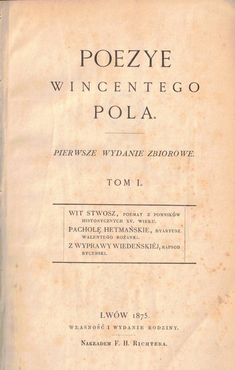 Zawiera: Wit Stwosz ; Pacholę hetmańskie ; Z wyprawy wiedeńskiej.