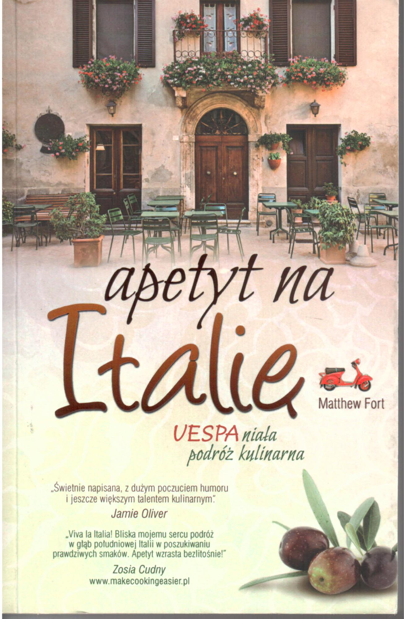 Matthew Fort, brytyjski pisarz i krytyk kulinarny, rusza VESPĄ śladem włoskich rarytasów. Podróż zaczyna w słonecznej Kalabrii, a kończy w Turynie. Pomysł podróży skuterem przez skąpany w słońcu krajobraz był naprawdę romantyczny. Wiązał się z poczuciem wolności, przygody, potencjalnych odkryć i seksualnych możliwości. Wiatr we włosach, słońce w plecy, droga wijąca się ku morzu, nieznane cuda za każdym rogiem. Południe zwiedza z czarującą Silvią, która wprowadza go w tajniki rodzimej kuchni. Neapol wita go tłumem turystów i zapachem prawdziwej pizzy. Po drodze poznaje ludzi, którzy o włoskiej kuchni wiedzą wszystko. Wybierz się w podróż marzeń! Poznaj smak aromatycznego prosciutto, odwiedź najstarsze włoskie manufaktury, dowiedz się, skąd pochodzi confetti i dlaczego likier Meletti jest tak pyszny? Specjalnie dla Ciebie Matthew Fort zdradza prawie 60 pilnie strzeżonych przepisów, których nie znajdziesz nigdzie indziej. Masz apetyt na więcej? Sprawdź, jaki przepis z książki przygotowała Zosia Cudny na blogu makecookingeasier.pl. (Rec. Wydawn.)