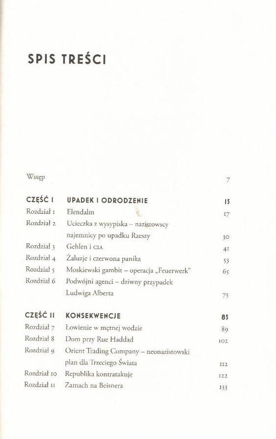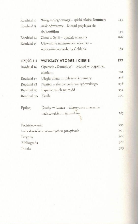 Co się działo z nazistami po II wojnie światowej? Dokąd uciekali? Znajdowali schronienie nie tylko w Ameryce Południowej, lecz także na Bliskim Wschodzie, w Afryce i Europie. Budowali potęgi agencji wywiadowczych – od CIA po KGB, a nawet Mosad. Opracowane przez nich metody przesłuchań są stosowane do dziś. Przez lata pozostawali bezkarni, a niektórych nigdy nie rozliczono z popełnionych zbrodni. Reinhard Gehlen, dawny członek sztabu generalnego Wehrmachtu, po wojnie zaoferował aliantom układ: informacje za ochronę. Okazał się tak wpływowy, że jego imieniem nazwano komórkę CIA, która zbierała informacje o słabościach ZSRR. Alois Brunner, funkcjonariusz gestapo, wysłał na śmierć tysiące Żydów. Po wojnie ukradł znajomemu tożsamość i z jego paszportem wyjechał na Bliski Wschód. Nielegalnie sprzedawał broń – i Amerykanom, i Sowietom. Był szpiegiem syryjskich służb wywiadowczych, a izraelscy agenci próbowali go zabić. Na emeryturze mieszkał w Damaszku i hodował króliki. Otto Skorzeny, członek sił zbrojnych SS, po wojnie dał się zwerbować agentom Mosadu. Choć – jak wielu jego byłych kolegów – wprost mówił, że wciąż wierzy w nazizm, pracował na rzecz państwa żydowskiego. Dlaczego tak wielu nazistów nigdy nie zostało osądzonych? Komu były potrzebne umiejętności, które zdobyli pod skrzydłami Hitlera? Dzięki niepublikowanym wcześniej źródłom, m.in. dokumentom Mosadu, Danny Orbach obnaża skalę nazistowskich wpływów. Demaskuje hipokryzję państw, które oficjalnie potępiły zbrodniczą ideologię, a równocześnie dawały schronienie najbliższym współpracownikom Hitlera i dzięki ich wpływom rozwijały swoje potęgi. Nasuwa się też wciąż aktualne pytanie: jakie są konsekwencje pobłażania zbrodniarzom?