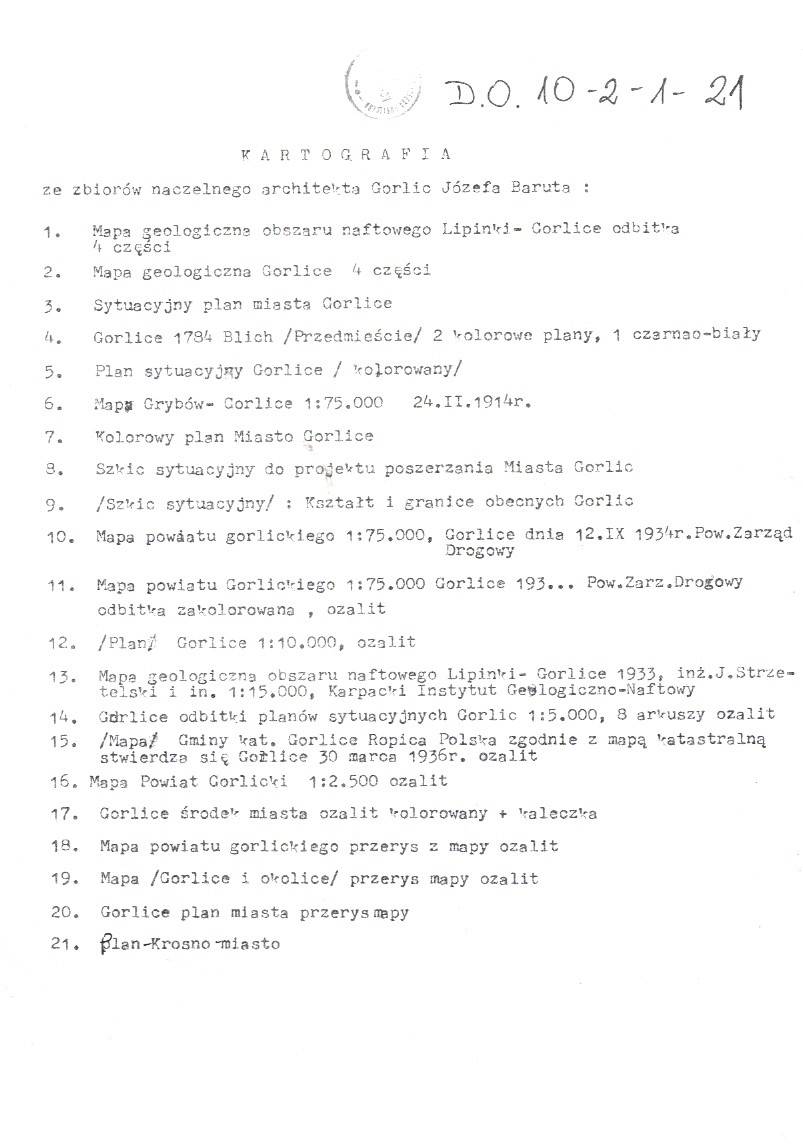2 teczki pierwsza z nich pt. "Gorlice - studium historyczno-urbanistyczne do planu zagospodarowania przestrzennego miasta" to zbiór fotografii Gorlic oraz map, druga teczka zawiera mapy Gorlic i powiatu gorlickiego.