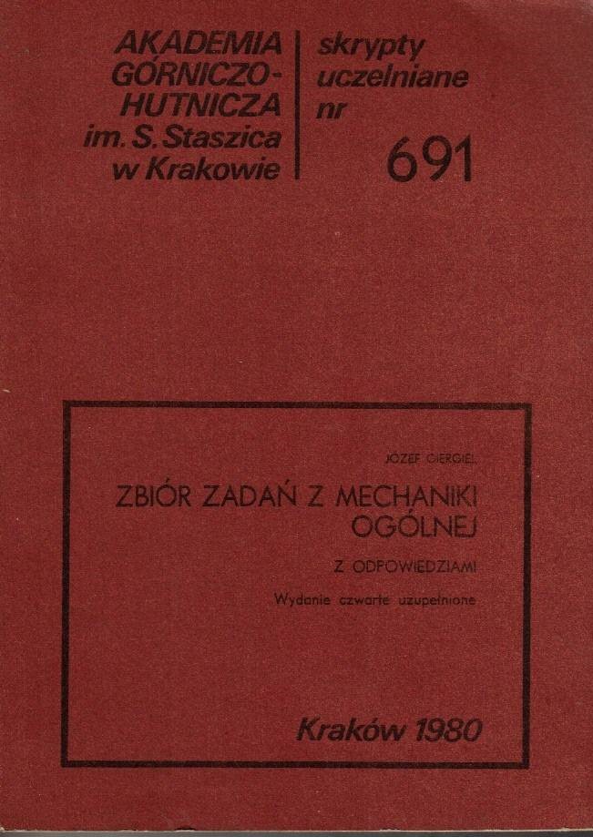 Skrypt : "Zbiór zadań z mechaniki ogólnej" - składa się z trzech części. Pierwsza obejmuje statystykę, druga kinematykę, a trzecia dynamikę. Skrypt przeznaczony jest głównie dla studentów wydziału Maszyn Górniczych i Hutniczych, Wydziału Elektotechniki, Wydziału Odlewnictwa, Wydziału Metali Nieżelaznych oraz Wydziału Metalurgicznego Akademii Górniczo-Hutniczej. Może być także pomocą naukową dla studentów innych wydziałów i uczelni tak studiów stacjonalnych, jak i studiów dla pracujących. W każdym rozdziale podano czytelnikowi skrótowo niezbędne wiadomości z mechaniki ogólnej, konieczne do rozwiązania zadań. Oczywiście podane w skrypcie podstawowe wiadomości z mechaniki nie wykluczają konieczności głębokiego studiowania mechaniki teoretycznej.... (Fragment wstępu)