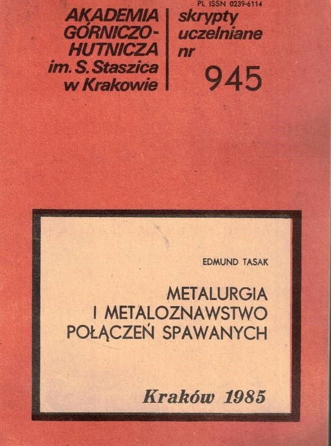 Metalurgia i metaloznawstwo połączeń spawanych / Edmund Tasak. - Wydanie I. - Kraków : AGH, 1985. - 206 stron : fotografie, wykresy ; 23 cm.