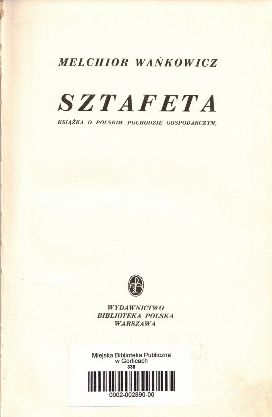 „Sztafeta” to barwna reporterska panorama z czasów dwudziestolecia międzywojennego o odbudowie II Rzeczypospolitej. Wańkowicz, przygotowując się do jej napisania, zgromadził dziesiątki informacji, przeprowadził setki rozmów, poczynając od prezydenta, wicepremiera, ministrów, a kończąc na marynarzach, górnikach i nauczycielach. Podobnie jak w późniejszej „Bitwie o Monte Cassino” potrafił z tych opowiadań stworzyć pełną pasji książkę. Powstał wielki reportaż literacki, będący pochwałą wysiłku i odbudowy gospodarczej II RP