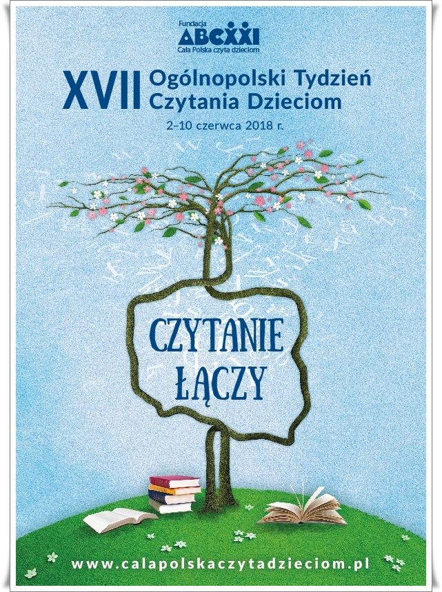 Plakat informujący o XVII Ogólnopolskim Tygodniu Czytania Dzieciom 2 - 10 czerwca 2018 roku.