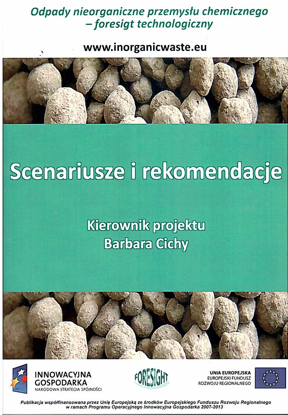 „Odpady nieorganiczne przemysłu chemicznego - Foresighttechnologiczny” red. Barbara Cichy projekt WND-POIG.01.01.01-00-009/09wprowadzenie Grzegorz Schroeder. Polska, wramach Unii Europejskiej, realizując własną politykę gospodarczą i ekologiczną przyjęła strategię trwałego i zrównoważonego rozwoju, według której obowiązek ochrony środowiska naturalnego jest elementem prawidłowego rozwoju gospodarczego [1]. Przemysł i jego rozwój nie może być traktowany oddzielnie i niezależnie od procesów zachodzących w środowisku naturalnym oraz przemian społecznych. We wszystkich aktach prawnych UE, dotyczących rozwoju będących odzwierciedleniem nowej filozofii postępowania, społeczeństwo i środowisko naturalne zostały uznano za najważniejsze elementy dalszego rozwoju gospodarczego opartego na strategii zrównoważonego rozwoju...( z wprowadzenia)