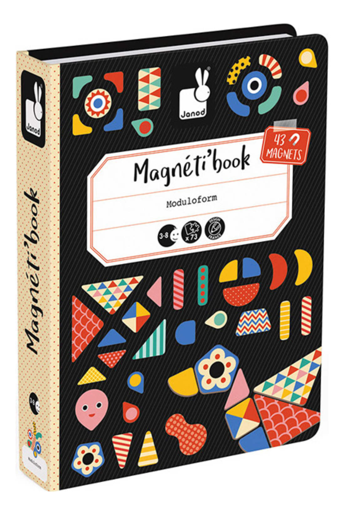 Jak książka! Ale w środku zamiast kartek - znajdziecie magnesy. Tył okładki to magnetyczne tło do kształtów. Magnetyczna układanka Janod to godziny kreatywnej, rozwijającej wyobraźnię zabawy. W zestawie: 43 kolorowych magnesów oraz 30 kart z przykładowymi pomysłami na różne - podstawowe i całkiem skomplikowane kształty. Forma pudełka-książki ze sztywną okładką i przegródkami jest bardzo poręczna i wygodna, w trakcie zabawy i przechowywania. Dzięki temu łatwo jest utrzymać porządek w magnesach. Magnetibook sprawdzi się doskonale w domu i w podróży.