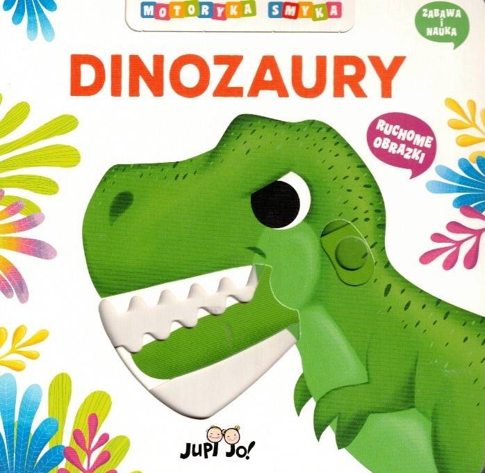 Mały czytelnik poznaje różne gatunki prehistorycznych gadów, oglądając pełne humoru, dostosowane do percepcji najmłodszych ilustracje. Uczy się również wielu nowych słów, wysuwa długą szyję brontozaura, odkrywa, co na grzbiecie ma inny dinozaur, i sprawdza, kto wykluje się z jaj. Uwagę dziecka przyciągają nie tylko ilustracje, ale także liczne ruchome elementy, które zapewniają wspaniałą, pełną niespodzianek zabawę rozwijającą wiele umiejętności. Maluch może manipulować, przekręcać, otwierać okienka i przesuwać elementy. Książeczki z serii Motoryka smyka pobudzają ciekawość dzieci oraz rozwijają ich sprawność manualną.
