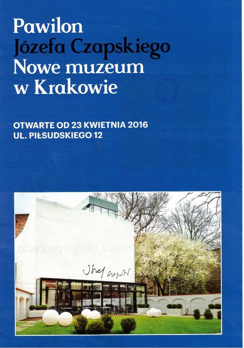 Broszura informująca o otwarciu pawilonu Józefa Czapskiego przy Muzeum Narodowym w Krakowie, które miało miejsce 23 kwietnia 2016 roku.