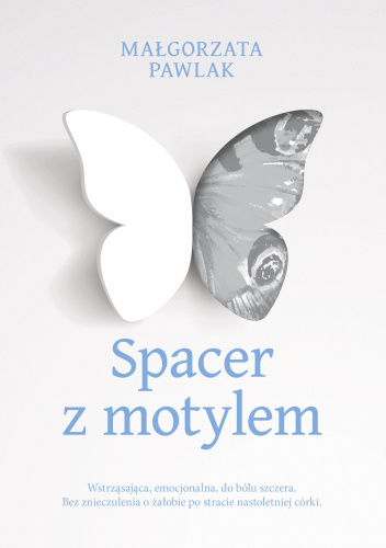 "Spacer z motylem" powstał trzy lata po tragicznej i nieoczekiwanej śmierci mojej piętnastoletniej córki Julii jako wyraz bólu, cierpienia i żałoby rodziny dotkniętej stratą. Historia opowiedziana przez matkę, to historia prawdziwa i bardzo osobista, z której nic nie ujęto, ani nic do niej nie dodano. To historia porażająca autentycznością. Obnaża drastycznie najskrytsze emocje najbliższych członków rodziny, od momentu wypadku, poprzez pobyt w szpitalu, pogrzeb dziecka oraz uczenie się życia w nowej, trudnej rzeczywistości. Jako matka mierząca się z własnym bólem i pragnąca scalić oraz ocalić szczątki każdego z uczestników tej traumy, przerywam impas, opowiadając krok po kroku, jak strata zmienia człowieka, jakie wyrządza szkody oraz czy da się posklejać ruiny opatrunkiem, znaleźć sens dla swojego życia z rozpierającą tęsknotą i pomimo pokrętnego losu? Czy jest nadzieja, aby przetrwać po stracie? Swoją opowieść uzupełniłam "Poradnikiem Po stracie, czyli jak się nie zachowywać i jak się zachować oraz jak skutecznie pomóc rodzicom pogrążonym w żałobie" - mam nadzieję, że razem z moją historią pomoże innym dotkniętym stratą.