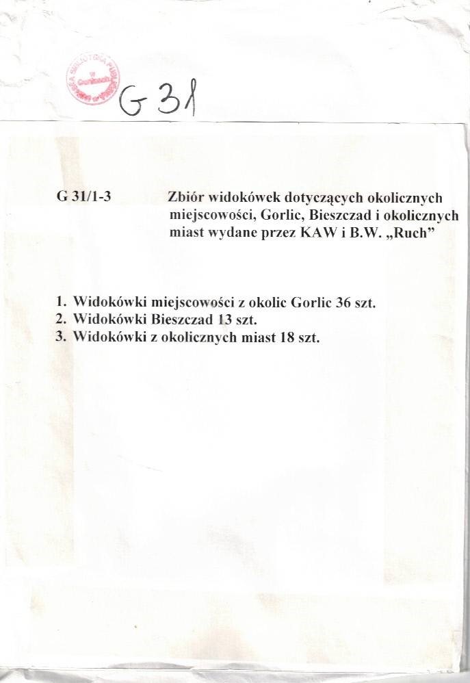 Widokówki z regionu gorlickiego. - [b.m.w.] : Krajowa Agencja Wydawnicza : Ruch, [b.r.w.]. - [1] teczka : ilustracje ; 18x25 cm.