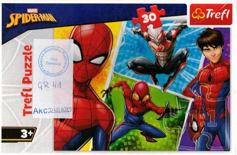 Spider-Man'a to puzzle składające się z 30 elementów, zaprojektowane z myślą o małych fanach superbohaterów. Po ułożeniu układanki powstanie obrazek o wymiarach 270x200 mm. Produkt wykonano z wysokiej jakości materiałów, z zastosowaniem specjalnego kalandrowanego papieru, który odbija światło, co ułatwia układanie. Puzzle zostały wyprodukowane w Polsce, a do produkcji zostały użyte ekologiczne materiały.