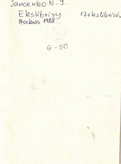 Ekslibrisy / N. J. Jancenko. - Moskwa : [Wystawa Centralna WOK], 1988. - [1] teczka : ilustracje ; 16x23 cm.
